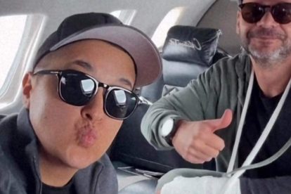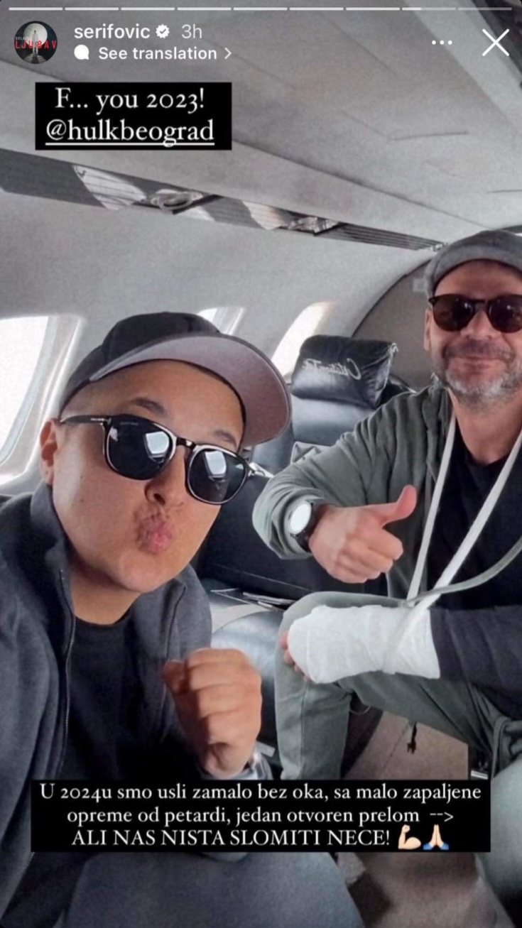 U povratku za Beograd objavila je fotografiju s članom tima, Milošem, koji se spotakao i slomio ruku prije samog nastupa.