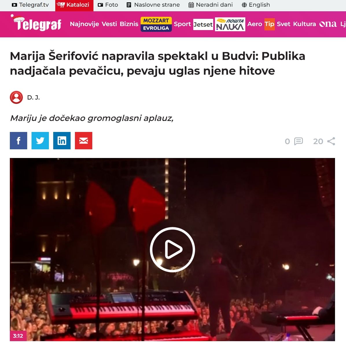 Nakon što je u Novogodišnjoj noći “skratila” svoj nastup u Zenici, srbijanska pjevačica Marija Šerifović je 1. januara nastupila u Budvi (Crna Gora).