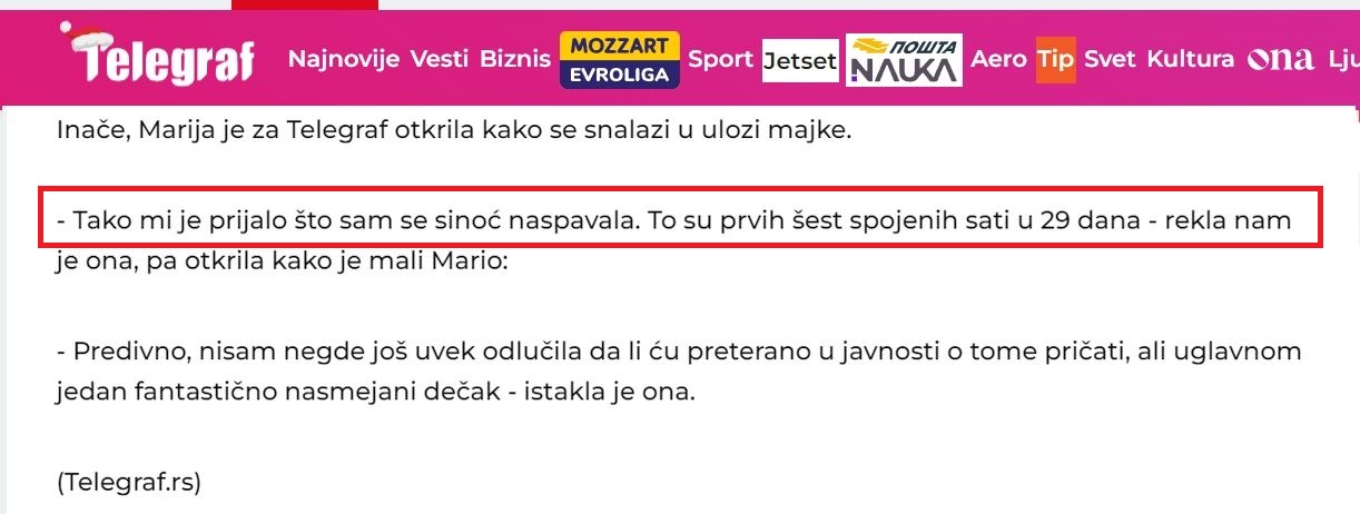 – Tako mi je prijalo što sam se sinoć naspavala. To su prvih šest spojenih sati u 29 dana, rekla je 1. januara uvečer o prethodnoj noći, tokom koje je imala nastup u Zenici.