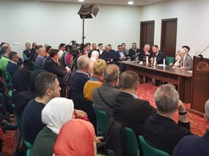 Moderator mr. Jakub ef. Salkica glavni imam MIZ Zenica predstavio je promotore knjige, uvažene profesore i doktore prof. dr. Nusret Isanović, prof. dr. Enes Durmišević i Mustafa Spahić Mujki, koji su uz autora hfz. doc. dr. Mevludina ef. Dizdarevića, govorili o knjizi koja će zasigurno zauzeti posebno mjesto u novijoj eri Bošnjaka koji su silom komunističke vlasti bili ubijani i nestajali sa lica zemlje.