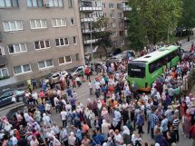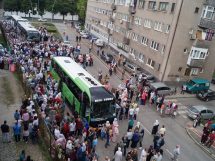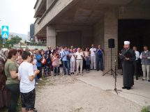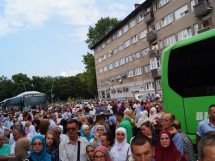 Ispraćaju hadžija prisustvovalo je nekoliko stotina prijatelja, komšija i rodbine budućih hadžija.
