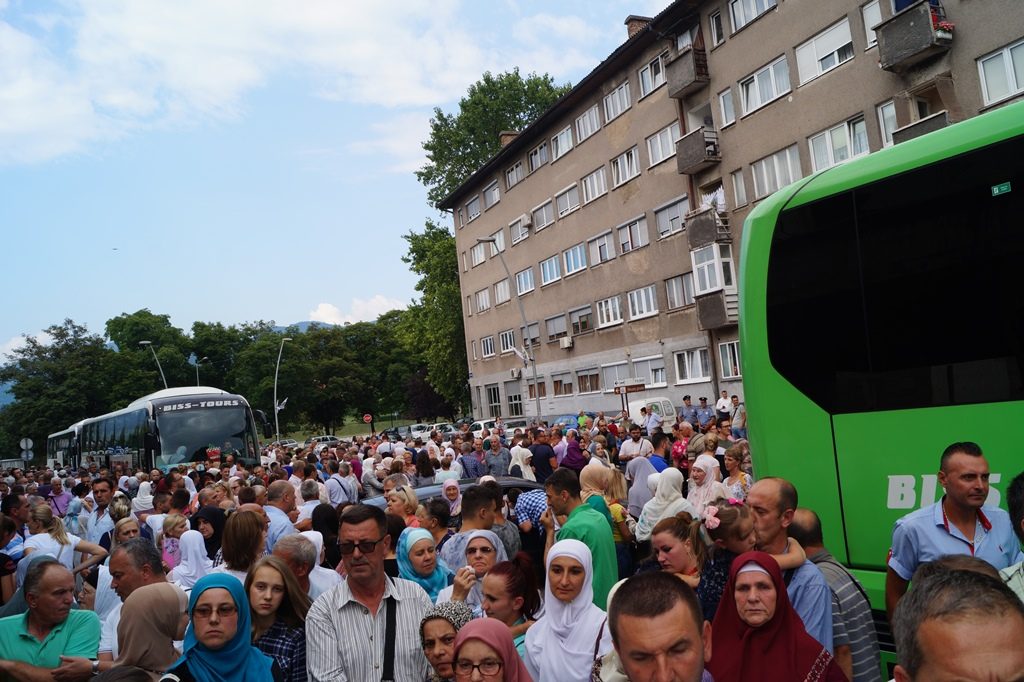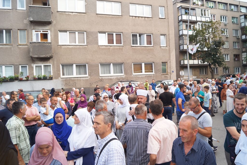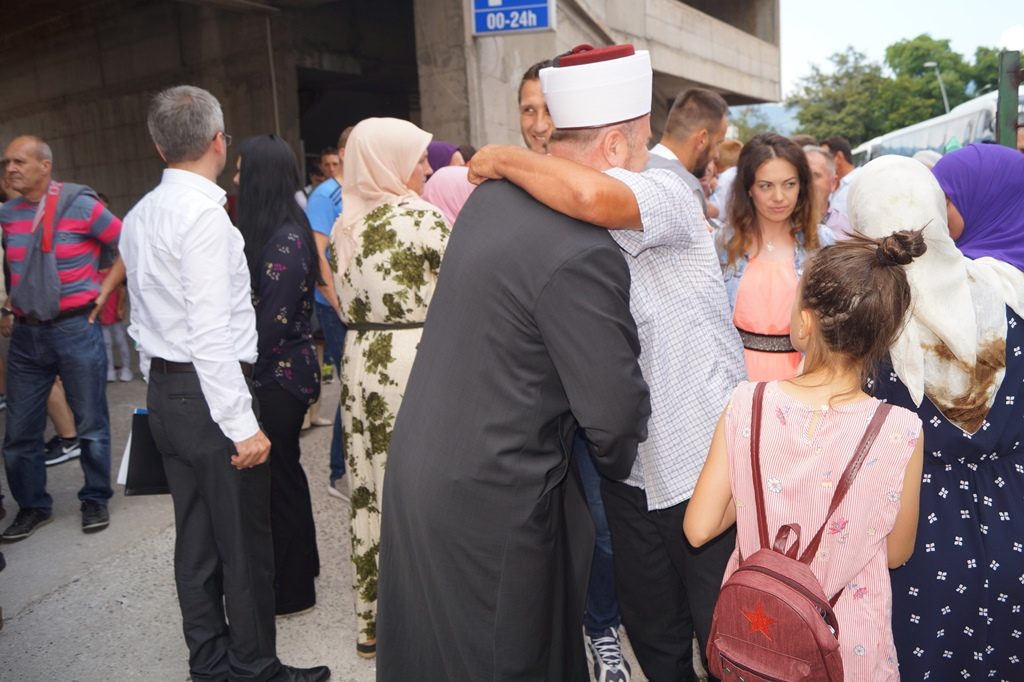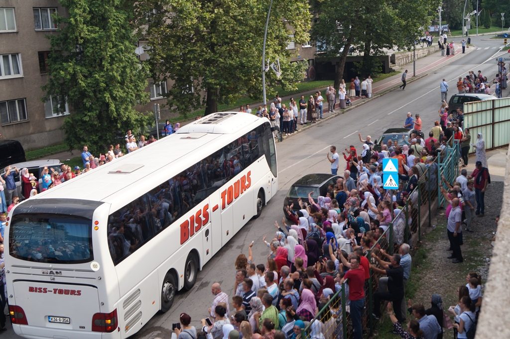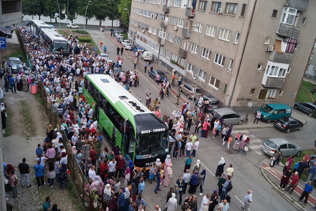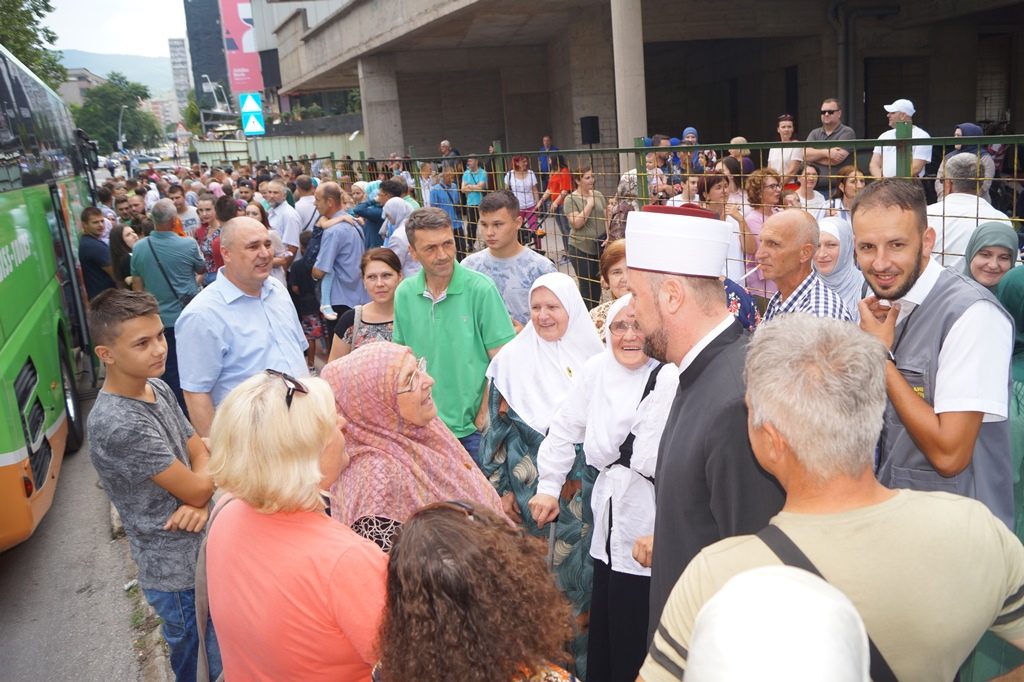 Ispraćaju hadžija prisustvovalo je nekoliko stotina prijatelja, komšija i rodbine budućih hadžija.