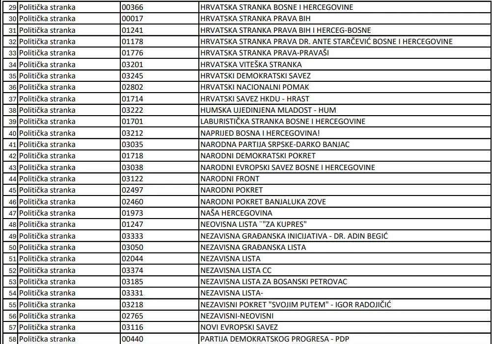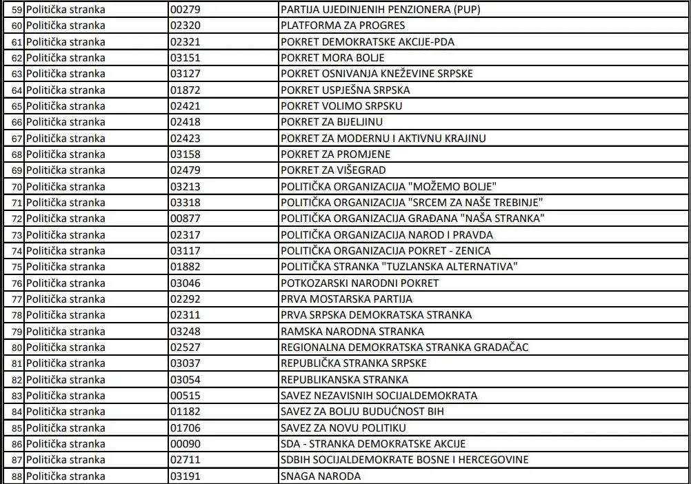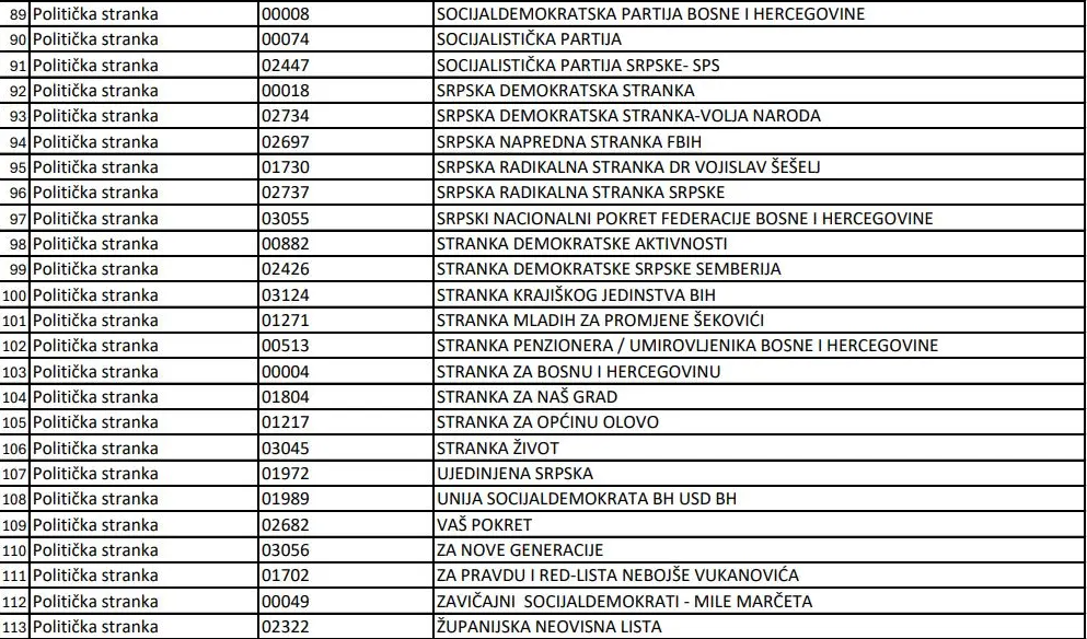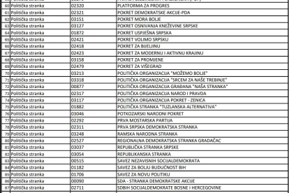 U nastavku pogledajte spisak stranaka koje su se prijavile.