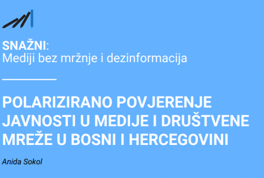 Istraživanje: Građani u BiH najviše vjeruju televiziji- Televizija se ističe kao najkorišteniji izvor vijesti u BiH, a javnost je podijeljena kada je riječ o povjerenju u medije – ukupno polovina ispitanika tvrdi da ne vjeruje medijima, dok skoro isto toliko ispitanika tvrdi da im vjeruje. Nivo povjerenja u određene medijske kuće i javne RTV-servise polariziran je po etnonacionalnoj liniji, što svjedoči o generalnoj polarizaciji medijskog sektora i javnosti u BiH, pokazalo je istraživanje Polarizovano povjerenje u javnost i medije u Bosni i Hercegovini.