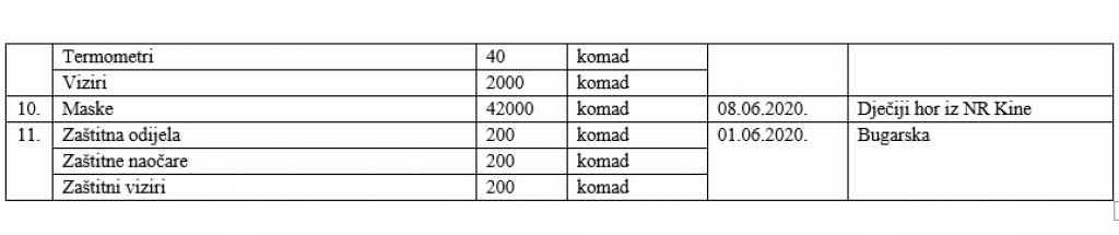 Radi se o robi koju su donirali domaći i međunarodni subjekti za potrebe prevencije, suzbijanja i otklanjanja epidemije prouzrokovane koronavirusom, a podaci do kojih smo došli odnose se na vremenski period od kraja marta do 14. juna ove godine.