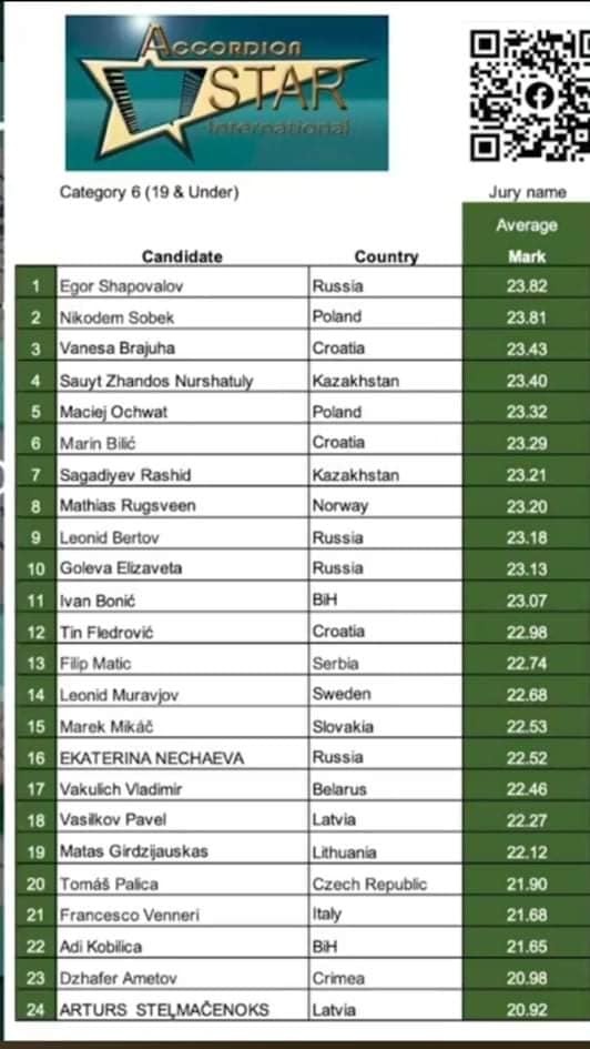 U kategoriji 10, Bach’s award, Ivan Bonić je osvojio 10. mjesto.