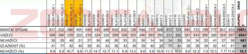 Iako mnogi pretpostavljaju da u Gradu žive osobe koje su “pismenije” odnosno znaju pravilno popuniti glasačke listiće, nije baš tako – Na Bilinom Polju 3 je zabilježeno sumnjivih 16,7 posto nevažećih, a iznad praga od 10 posto nevažećih su i većina zeničkih gradskih naselja Blatuša 1 (11,0), Blatuša 2 (14,7), Blatuša 3 (12,7), Blatuša 4 (11,1), Blatuša 6 (13,5), Brist 3 (10,9), Brist 4 (11,1), Brist 5 (10,0), Zmajevac 2 (12,3), Nova Zenica 3 (12, 5), te Nova Zenica 4 (11,6). U krugu 10+ u gradskim biralištima nevažećih su i Carina 2 (11, 6), Centar 2 (11, 5), Centar 4 (11, 3), Gornja Zenica (14, 6) Trgovišće 2 (15, 6), Jalija 3 (12, 6), Sejmen 3 (12, 7), Londža 1 (10, 7), Londža 3 (14, 9), Mokušnice 2 (11, 4), Odmut 4 (12, 7), te Vražale (11, 1).