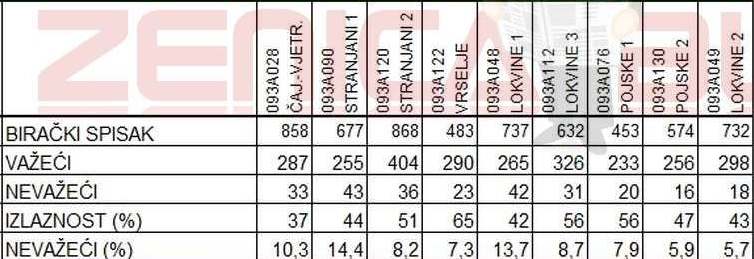 Na kraju, u slivu Kočeve iznad 10 posto nevažećih je samo na biralištima Čajdraš-Vjetrenice (10,3) Stranjani 1 (14,4), te Lokvine 1 (13,7 posto).