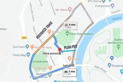 Dosadašnja trasa vozila Hitne pomoći kretala se s polazne adrese fra Ivana Jukića, a zatim kroz ulicu Aska Borića i fra Hrge Martića do bulevara Kulina bana i zeničke Lamele. Za prelazak ove trase vozilima Hitne pomoći trebalo je i po nekoliko minuta, ovisno od gradske gužve i nesavjesnih vozača, a izgradnjom tzv. “Plavog puta”, taj put će se skratiti na samo stotinjak metara i nekoliko sekundi dolaska do iste lokacije.