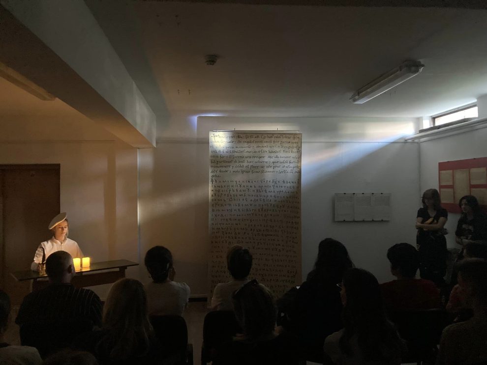 Na početku izložbe prigodan performans održali su prof. Dragan Gavran i učenici Gimnazije, Emina Topić i Marko Puđa.