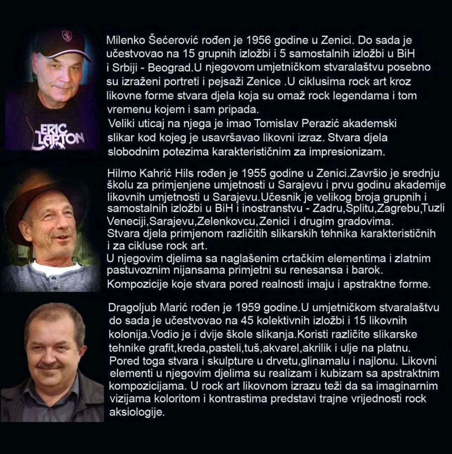 Ovom izložbom autori kroz likovne forme podsjećaju na vrijeme kada je rock muzika ujedinila sve mlade generacije u svijetu i slobodarski duh koji je bio prisutan u svim oblastima života.Na platnima su figurativno predstavljene rock legende sa koloritom i emocijama koje su prepoznatljive kod svakog autora.Izložba je pobudila veliki interes ljubitelja rock art umjetnosti koji su osim iz Zenice došli iz drugih gradova regiona i inostranstva.