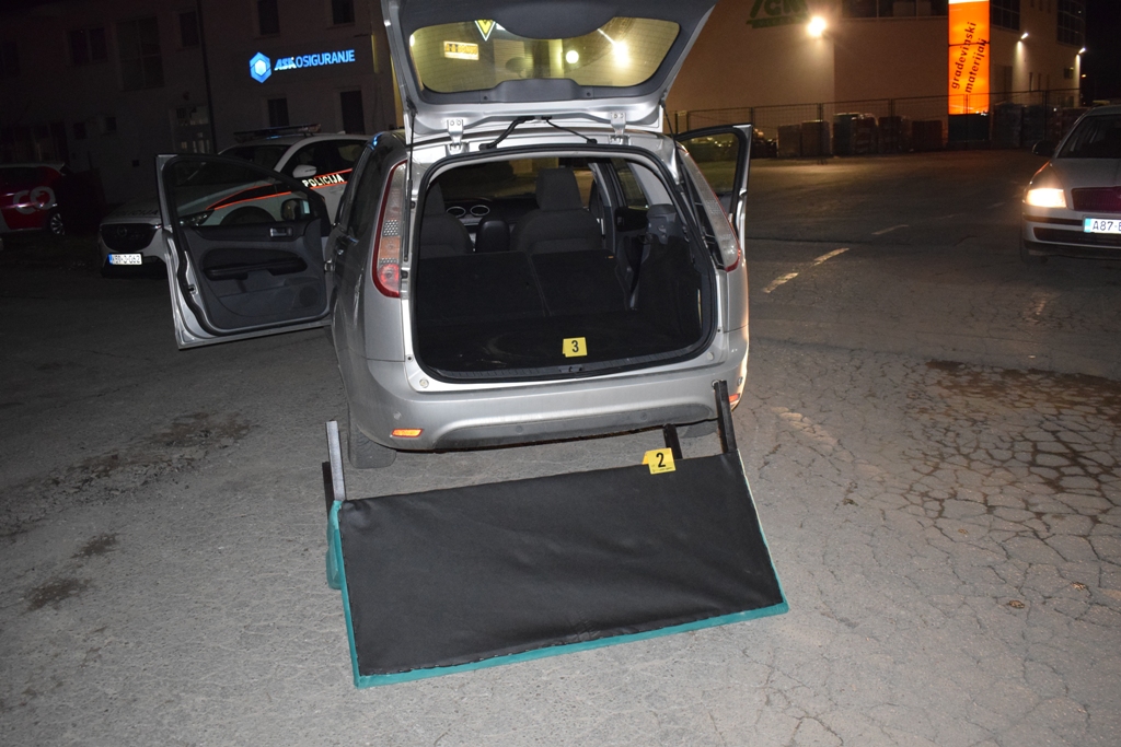 U skladu sa prikupljenim operativnim saznanjima, službenici kriminalističke policije Policijske stanice Visoko su dana 04.03.2022. godine, u 18,45 sati, u ulici Kakanjska, zaustavili putničko motorno vozilo marke “Ford”, registarskih oznaka E76-J-017, kojim je upravljalo lice Dž.A., rođeno 1988. godine, iz Zenice, sa kojim se kao saputnik u vozilu nalazilo lice L.M., rođeno 1987. godine, iz Visokog.
