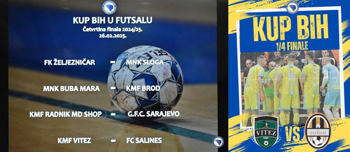 U prostorijama NS/FS BiH u Sarajevu danas je obavljen žrijeb 1/4 finala Futsal Kupa Bosne i Hercegovine, sezona 2024/25.