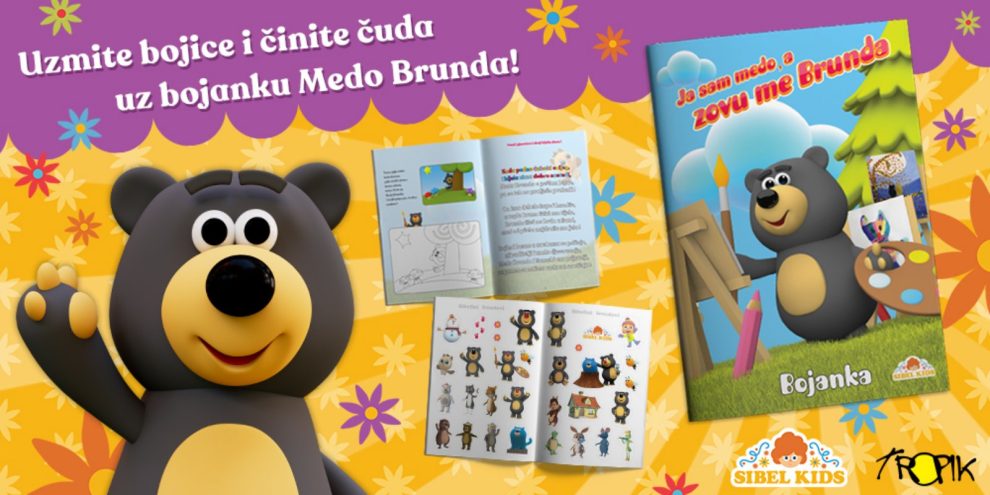 Bojanku “Ja sam medo, a zovu me Brunda” potražite na kioscima, prodavnicama, Tropik Gifts and Games radnjama ili putem web shop-a: