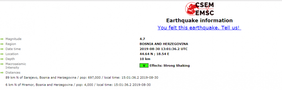 Posljedice zemljotresa osjetili su se širom BiH, kao i u Zenici, a trenutno nema informacija o materijalnoj šteti.