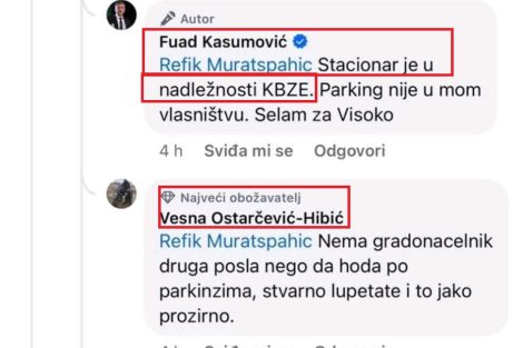 Gradonačelnik naravno kazuje da oparking nije “u njegovom vlasništvu”, te navodi da je Stacionar u vlasništvu KBZ, što ustvari nije bio predmet upita, nego parking ispred. Naravno, u odbranu lika i djela gradonačelnika, kako je to uobičajeno u totalitarnim društvima kao što je ovo u kojem živimo, uključuju se ničim izazvani “najveći obožavatelji” što je oznaka koju Facebook daje onima koji su aktivni na svakoj ili većini objava spomenute osobe, naravno u pozitivnom smislu.