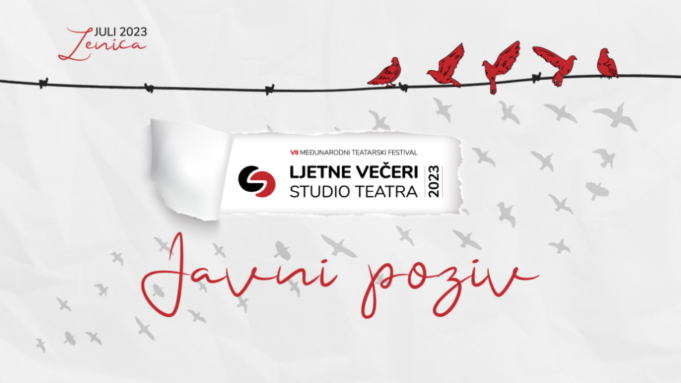 Pozivaju se pozorišne/kazališne kuće, ansambli i ostale organizacije profesionalne pozorišne produkcije iz Bosne i Hercegovine i inozemstva da prijave predstave rađene u njihovoj produkciji ili koprodukciji za učešće u netakmičarskom programu festivala Ljetne večeri Studio Teatra 2023., koji će se održati u periodu od 04.- 09. jula 2023. godine u Zenici, BiH. U programu festivala ukupno će biti šest predstava, četiri za odrasle i dvije za djecu.