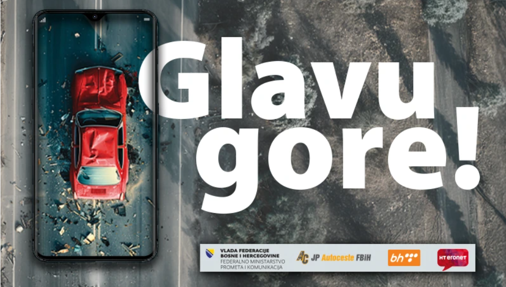 Federalno ministarstvo prometa i komunikacija, u saradnji s JP Autoceste Federacije BiH, HT Eronetom i BH Telecomom, pokreće četvrtu preventivno-edukativnu kampanju „Glavu gore! Stop korištenju mobitela u prometu“, koja će se provoditi u periodu od 2. do 30. aprila 2026. godine.