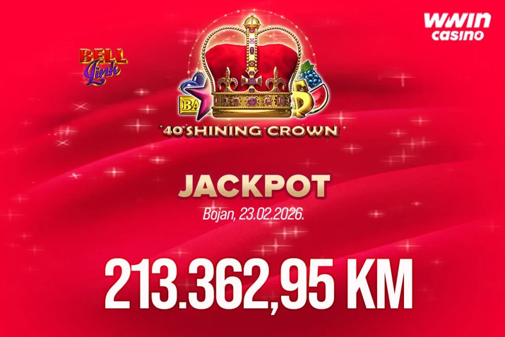 Na WWIN-u je ponekad dovoljan samo jedan trenutak. Jedan spin koji briše granice i pretvara malu odluku u veliku priču. Upravo to se dogodilo igraču po imenu Bojan, koji je na igri 40 Shining Cwown provajdera EGT Digital, uz ulog od svega 0,50 KM, osvojio JACKPOT U iznosu od impresivnih 213.362,95 KM.