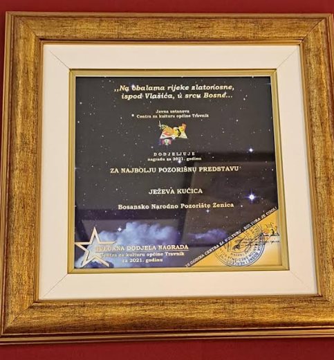 Na Svečanoj dodjeli nagrada Centra za kulturu općine Travnik predstava „Ježeva kućica“ prema tekstu Branka Ćopića, u režiji Miroljuba Mijatovića i u koprodukciji Bosanskog narodnog pozorišta Zenica sa Kulturno-sportskim centrom Kakanj i Centrom za kulturu Zavidovići je proglašena najboljom predstavom.