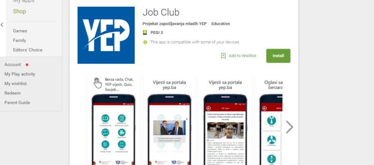 Aplikacija se može instalirati sa Google Play Store-a pod imenom JOB CLUB, ili putem linka: