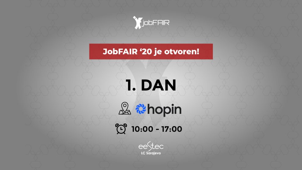 JobFAIR ’20 je zvanično otvoren – “JobFAIR ‘20 – Iskoristi svoju šansu! je sajam zapošljavanja za studente i diplomce tehničko-tehnoloških fakulteta i ekonomije, organizovan od strane članova udruženja EESTEC, zvanično je otvoren jutros, 9. novembra, u online formatu na platformi Hopin. Dvanaesti Sajam će trajati dva dana u periodu od 10:00 do 17:00 sati.