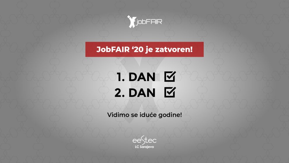JobFAIR ’20 je zvanično završen – “JobFAIR ‘20 – Iskoristi svoju šansu!”, sajam zapošljavanja za studente i diplomce tehničko – tehnoloških fakulteta i ekonomije je zvanično završen.