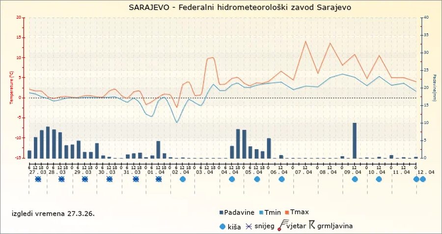 Prema prognozi Federalnog hidrometeorološkog zavoda, zimski uvjeti koji su izostali u februaru i većem dijelu marta, u narednim danima će pokazati svoju punu snagu širom Bosne i Hercegovine.