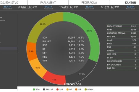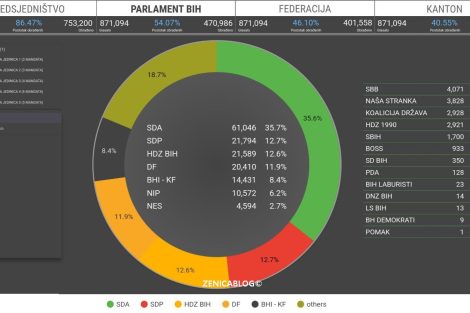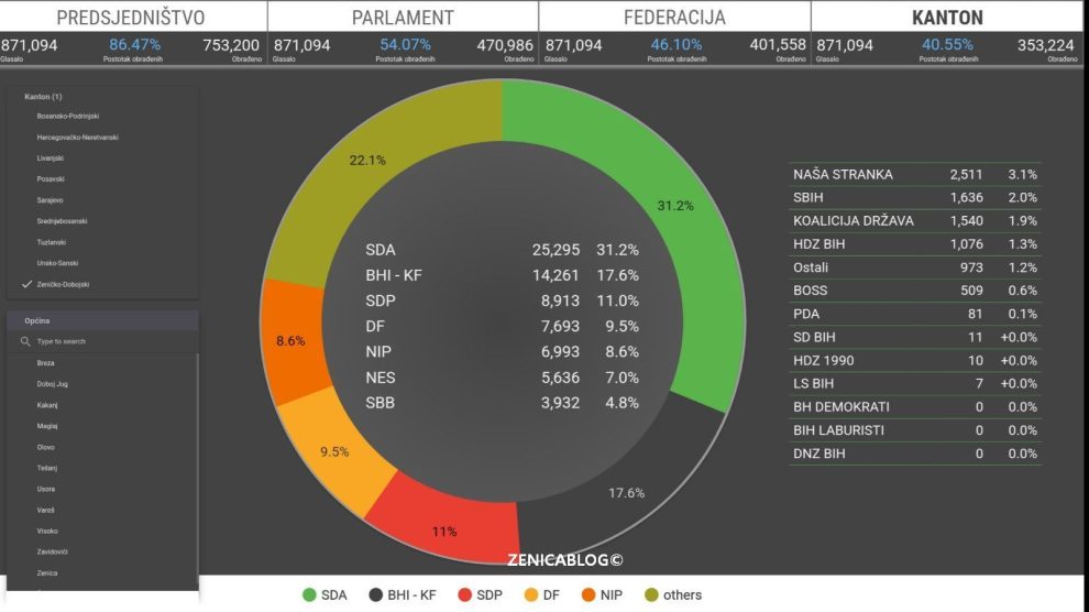 Jutrošnji podaci: u utrci za Skupštinu ZDK, SDA ima najviše glasova, slijede BHI – KF, SDP, DF…..