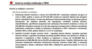 Ne možemo potvrditi niti ispunjenost utvrđenih kriterija (hitnost, nepredviđenost, specifičnost programa) kod realizacije interventnih sredstava u iznosu od 542.000 KM, kao ni dodjelu sredstava bez primjene kriterija Sveučilištu u Mostaru za podršku programskim aktivnostima u iznosu od 50.000 KM. Navedeno ukazuje na to da nije osigurano transparentno i efikasno upravljanje budžetskim sredstvima u skladu s članom 38. Zakona o izvršavanju budžeta FBiH za 2022. godinu – upozoravaju revizori.