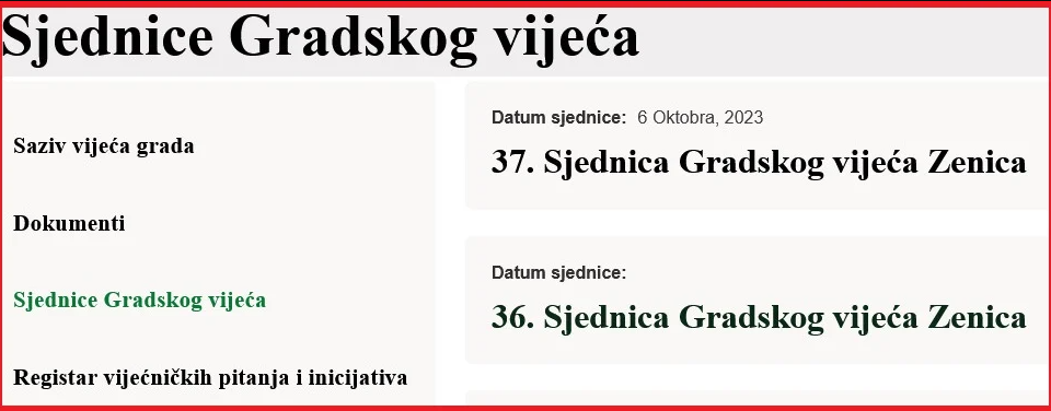 Da je javnost isključena iz mnogih dešavanja rada Gradske uprave kazuje i podataka da je na web stranici Grada Zenica već nekoliko mjeseci ukinuta objava pratećih dokumenata za Gradsko vijeće prilikom najava sjednica.