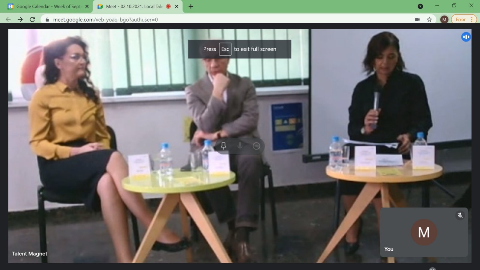 Kako privući i zadržati talentirane mlade osobe – kako spriječiti odlazak najboljih?- U okviru realizacije aktivnosti iz radnog paketa T2 (TalentMagnet Toolkit) projekta TalentMagnet, u prostorijama Studentskog centra Univerziteta u Zenici, u subotu, 02.10.2021. godine, održan je panel-razgovor u okviru kojeg se razgovaralo o temama vezanim za privlačenje i zadržavanje mladih talenata u našoj sredini. Projekat TalentMagnet odobren je pod nazivom „Improved Institutional Capacities and New Multilevel Governance for Talent Attraction and Retention in the Danube Region“ – „TalentMagnet“ (“Poboljšani institucionalni kapaciteti i novo upravljanje na višem nivou za privlačenje i zadržavanje talenata u Dunavskom području”) u sklopu Trećeg poziva za projektne prijedloge Interreg Dunavskog transnacionalnog programa 2014-2020 (DTP). Projekat je finansiran od strane EU fondova (ERDF, IPA, ENI). Jedan od 18 projektnih partnera iz 12 zemalja je i Stručna služba za razvoj i međunarodne projekte Zeničko-dobojskog kantona koja je i organizator svih aktivnosti projekta TalentMagnet na našem području.