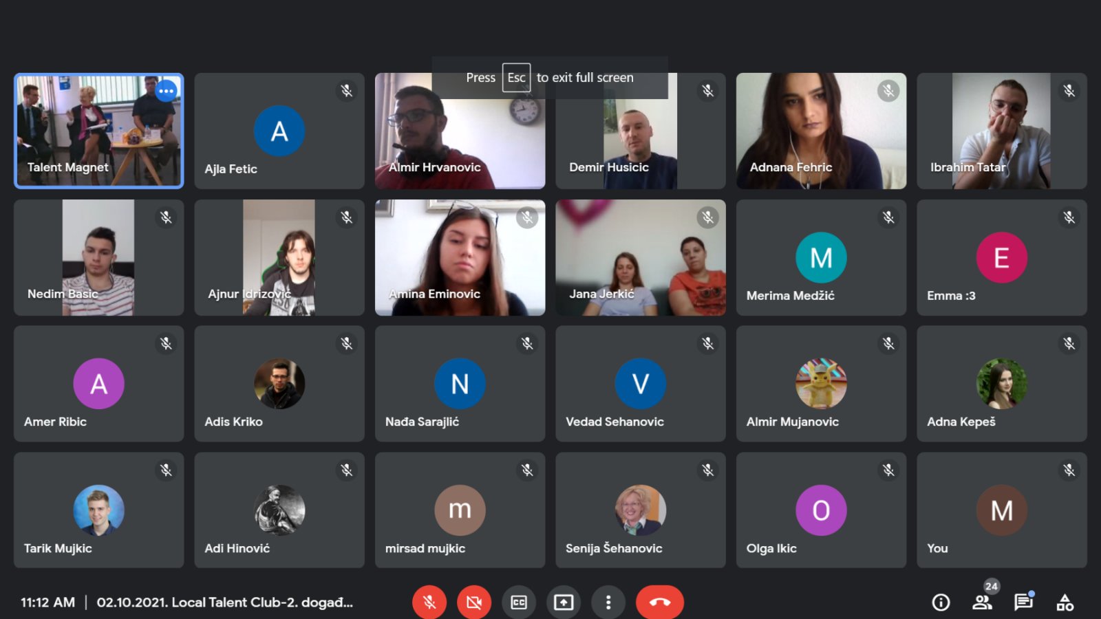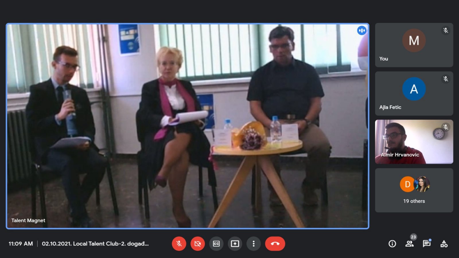 Klub lokalnih talenata koji broji oko pedeset mladih ljudi koji su već prepoznati kao talenti u različitim oblastima kulture i umjetnosti, nauke i tehnologije, obezbijedio je njihovo međusobno povezivanje i podršku svakom pojedincu. Klub međutim treba i da olakša dijalog između mladih talentiranih osoba i onih društvenih i privrednih aktera, lokalnih organizacija, institucija i preduzeća koji imaju interes i značajnu ulogu u privlačenju i zadržavanju mladih ljudi u lokalnoj sredini. Svakako da je za razvoj talenata dalje potrebno obezbijediti i bolju infrastrukturu odnosno razviti modele, alate i politike koji će to omogućiti. Na subotnjem panelu pokušalo se doći upravo do odgovora koji mogu doprinijeti ovim aktivnostima kao i projektnim izlaznim rezultatima. Panelu je u ime Projektnog partnera prisustvovao projektni menadžer g. Emir Bihorac, dok je panel moderirala doc.dr. Senija Šehanović. Panelisti su bili predstavnici ustanova srednjoškolskog i visokoškolskog obrazovanja,  Službe za zapošljavanje ZE-DO kantona te predstavnici privrede i nevladinog sektora. Svi panelisti su dali značajan doprinos dolaženju do potrebnih odgovora na pitanja na koji način, uz koje alate i politike zaustaviti odlazak najboljih mladih ljudi iz naše sredine. Zbog pandemije COVID-19, članovi Kluba lokalnih talenata su panel pratili online,  ali to nije narušilo  interakciju sa panelistima koja je bila na zavidnom nivou.