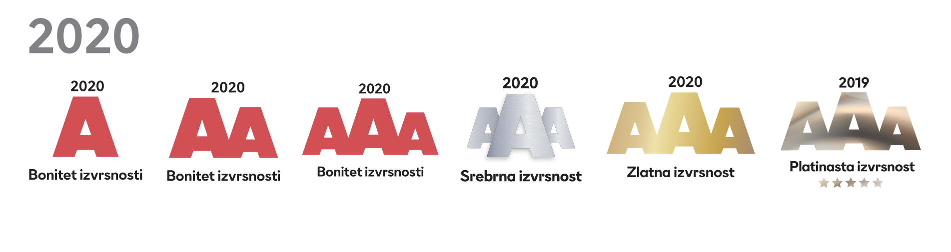 Dakle, od ukupnog broja bonitetno izvrsnih kompanija, ukupno 71% kompanija svrstano u najviši razred bonitetne izvrsnosti, jer 3 godine zaredom zadovoljavaju standarde bonitetne izvrsnosti, koji se označava kao Srebrna bonitetna izvrsnost, koju je ostvarilo 50% od ukupnog broja bonitetno izvrsnih kompanija, Zlatna izvrsnost koju je ostvarilo 16% bonitetno izvrsnih kompanija ili Platinasta izvrsnost koju ima samo 5% bonitetno izvrsnih kompanija u Bosni i Hercegovini. Ostalih 29% pripada A, AA i AAA bonitetnom rangu.