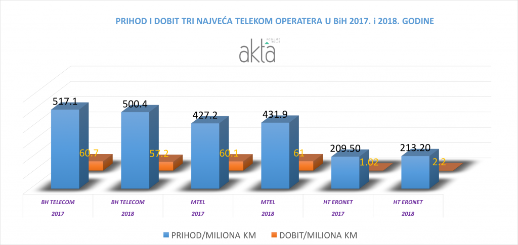 Dobit BH Telekoma 2018. godine iznosila 57,2 miliona KM, što je znatno slabiji rezultat nego u istom razdoblju 2017. godine kada je neto dobit iznosila 60,7 miliona KM.