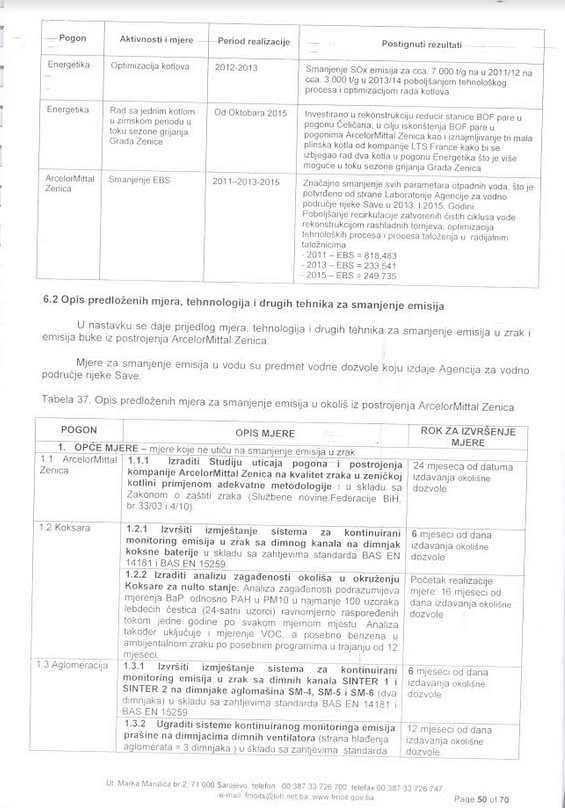 – jedine firme koje vrše određena mjerenja u AM Zenica su “TQM” iz Lukavca i “Dvokut” iz Sarajeva i za mnoga od njih te firme nemaju akreditaciju. EF je insistirao da u tom slučaju ta mjerenja obavljaju akreditovane firme iz regije i taj prijedlog nije usvojen. S druge strane rezultati koje su objavile ove firme nisu validni kako ni po metodi tako ni po konačnim rezultatima. Naravno, rezultate koje u svojoj režiji radi Arcelor Mittal ne možemo priznati ni po kojem osnovu, jer komentar nije potreban.