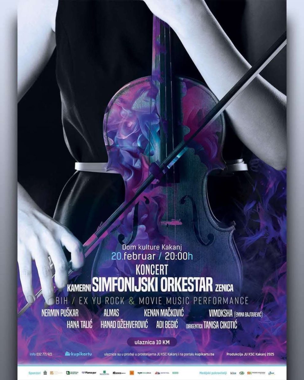 Kamerni simfonijski orkestar Zenica, pod dirigentskom palicom profesorice Tanise Cikotić, održat će 20. februara s početkom u 20.00 sati u Domu kulture Kakanj, koncert pod nazivom “BiH EX YU ROCK & Movie Music Performance” – potvrdio je Feni direktor Javne ustanove Kulturno-sportski centar Kakanj Dženan Ajdinović.