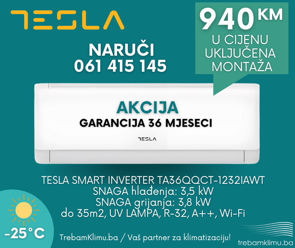 Nudimo najpovoljnije cijene: TESLA, MIDEA, HISENSE, VIVAX, LG, GREE, AZURI, MITSUBISHI ELECTRIC, HAIER, VOX, TOSHIBA, DAIKIN
