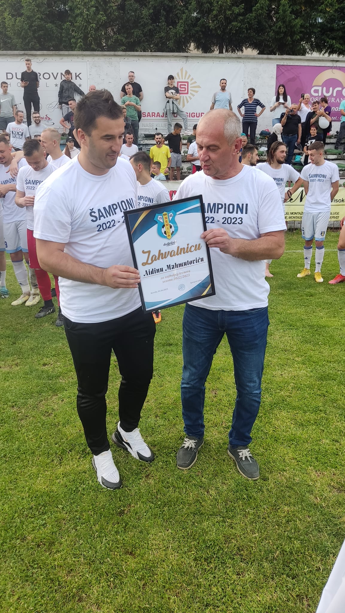 (Glavni trener Aidin Mahmutović, predstavnik kluba Amel Čamdžić).