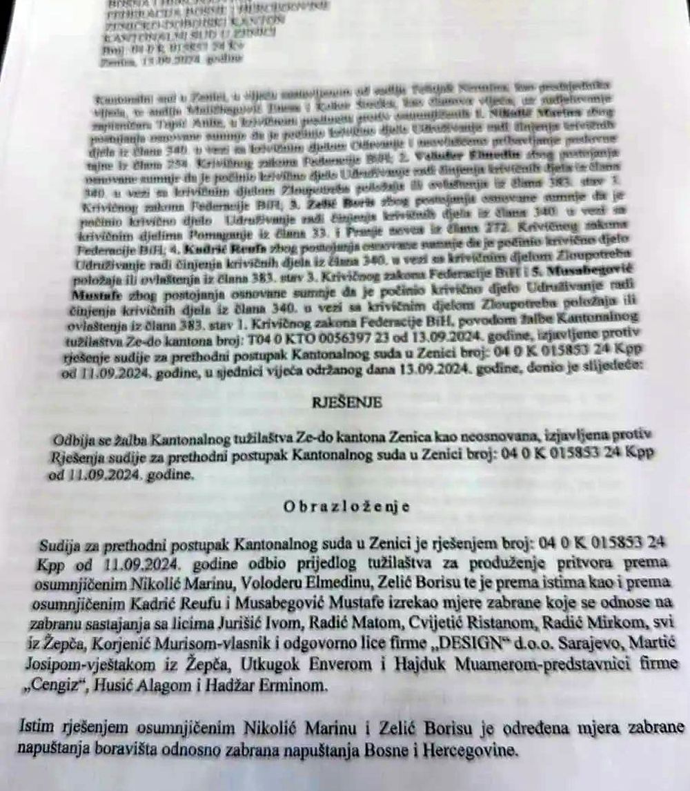 Kantonalni sud u Zenici odbio je zahtjev Tužilaštva ZDK zbog neodređivanja pritvora Marinu Nikoliću, Elmedinu Voloderu i Borisu Zeliću koji su uhapšeni u akciji “Landfill”.