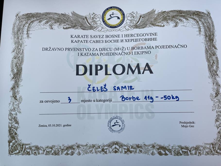 Karate klub Alfa: Samir Čeleš treći na Državnom prvenstvu- Danas je u Zenici održano Državno prvenstvo u karateu.