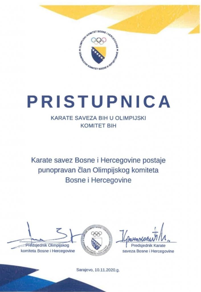 Napominjemo činjenicu da je KARATE SAVEZ BIH potpisao PRISTUPNICU sa Olimpijskim komitetom BiH.