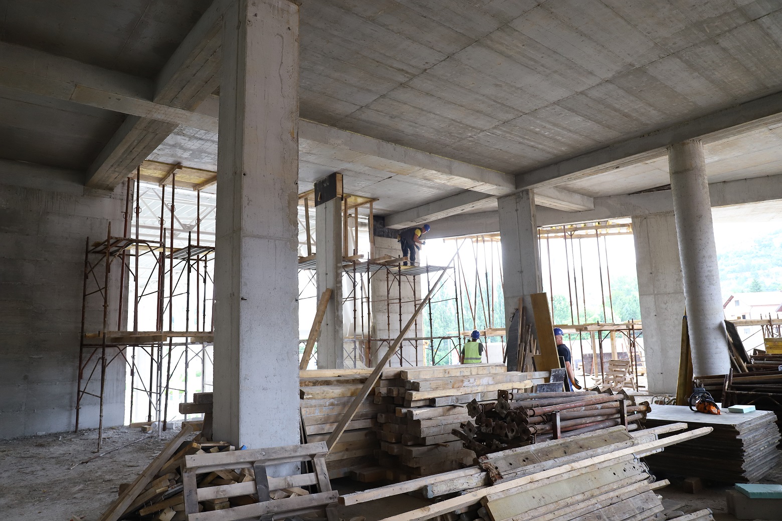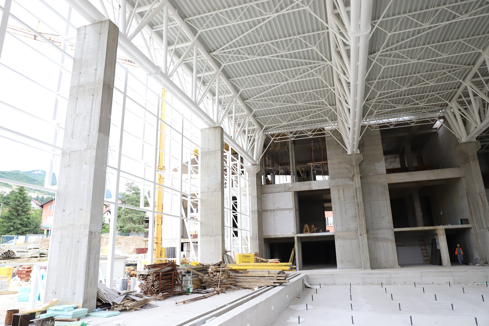 Radovi prve faze obuhvatili su grube građevinske radove: zemljane, betonske i armirano-betonske radove, kao i postavljanje čelične konstrukcije, krovopokrivačke i izolaterske radove. Objekat je podijeljen u više funkcionalnih cjelina.