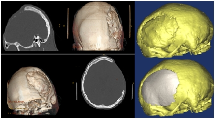 Radi se o devetnaestogodišnjem pacijentu iz Konjica, koji je dvije godine ranije preživio tešku povredu glave iza koje je zaostao veliki defekt svih kostiju lijeve polovine lobanje, uključujući dio baze lobanje i zida očne duplje. Primjenom standarnih metoda u neurohirurgiji i estetskoj hirurgiji nije bilo moguće uraditi vjerodostojnu estetsku i funkcionalnu rekonstrukciju lobanje.