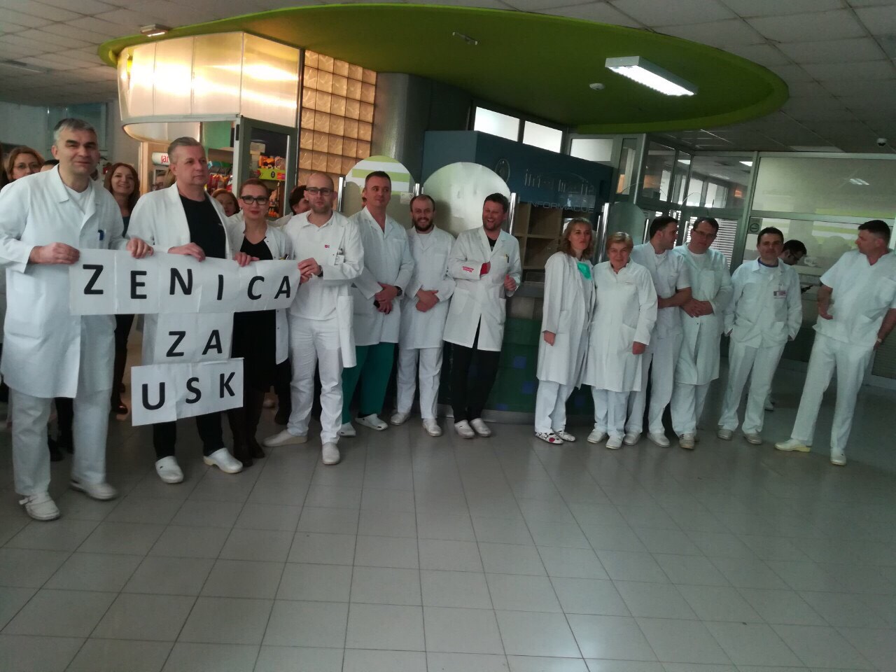 KBZ: Podrška kolega ljekarima u USK – Sindikat ljekara i stomatologa Kantonalne bolnice Zenica organizirao je polusatno okupljanje u znak podrške kolegama u USK koji su u štrajku već 17 dana.