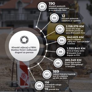 S druge strane, na spisku poreznih dužnika koji je Porezna uprava FBiH posljednji put ažurirala 30. septembra 2023. može se naći niz kineskih poslovnih subjekata. Riječ je o milionskim poreskim dugovima.