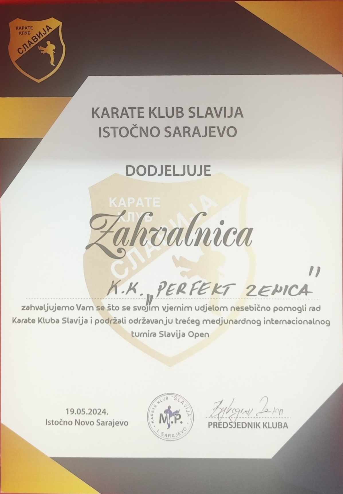 U nedjelju 19.05.2024.godine učestvovali smo na Međunarodnom karate turniru *3.SLAVIJA OPEN 2024* u Istočnom Sarajevu. Turnir je okupio 4 države 60 klubova 573 prijava i 486 učesnika. Iskrene čestitke upućujemo organizatoru karate klubu *Slavija* Istočno Sarajevo.