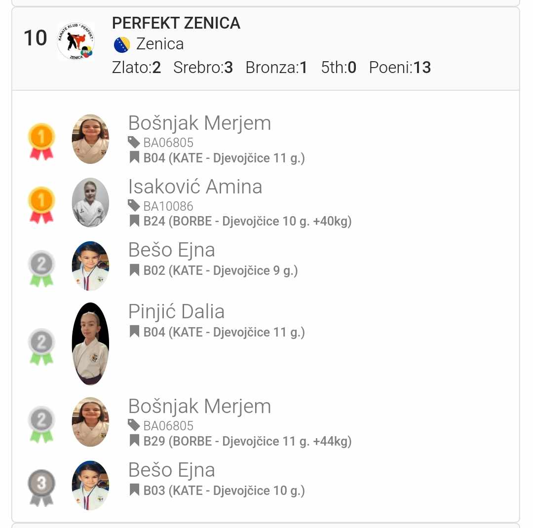 Naš Karate klub Perfekt Zenica je učestvovao sa 9 takmičara u kategorijama kate i borbe, te smo ukupno osvojili 15 medalja.
