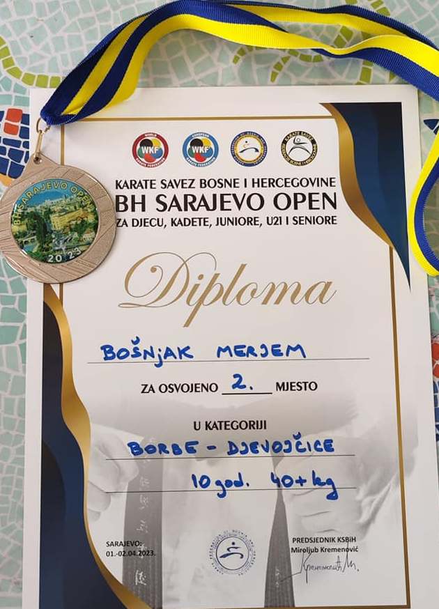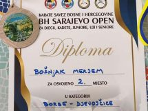 – na izbornom karate turniru BH SARAJEVO OPEN uspješno osvojila drugo mjesto i srebrenu medalju