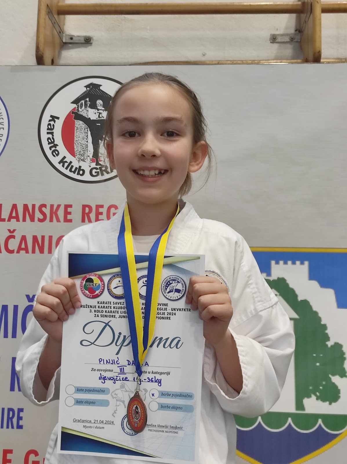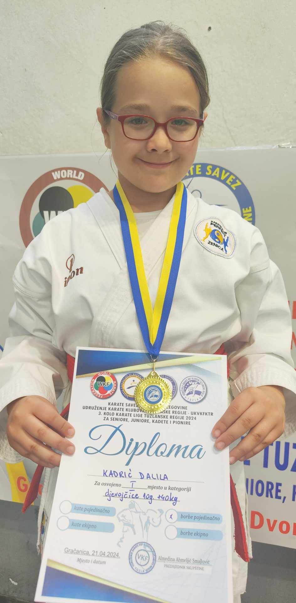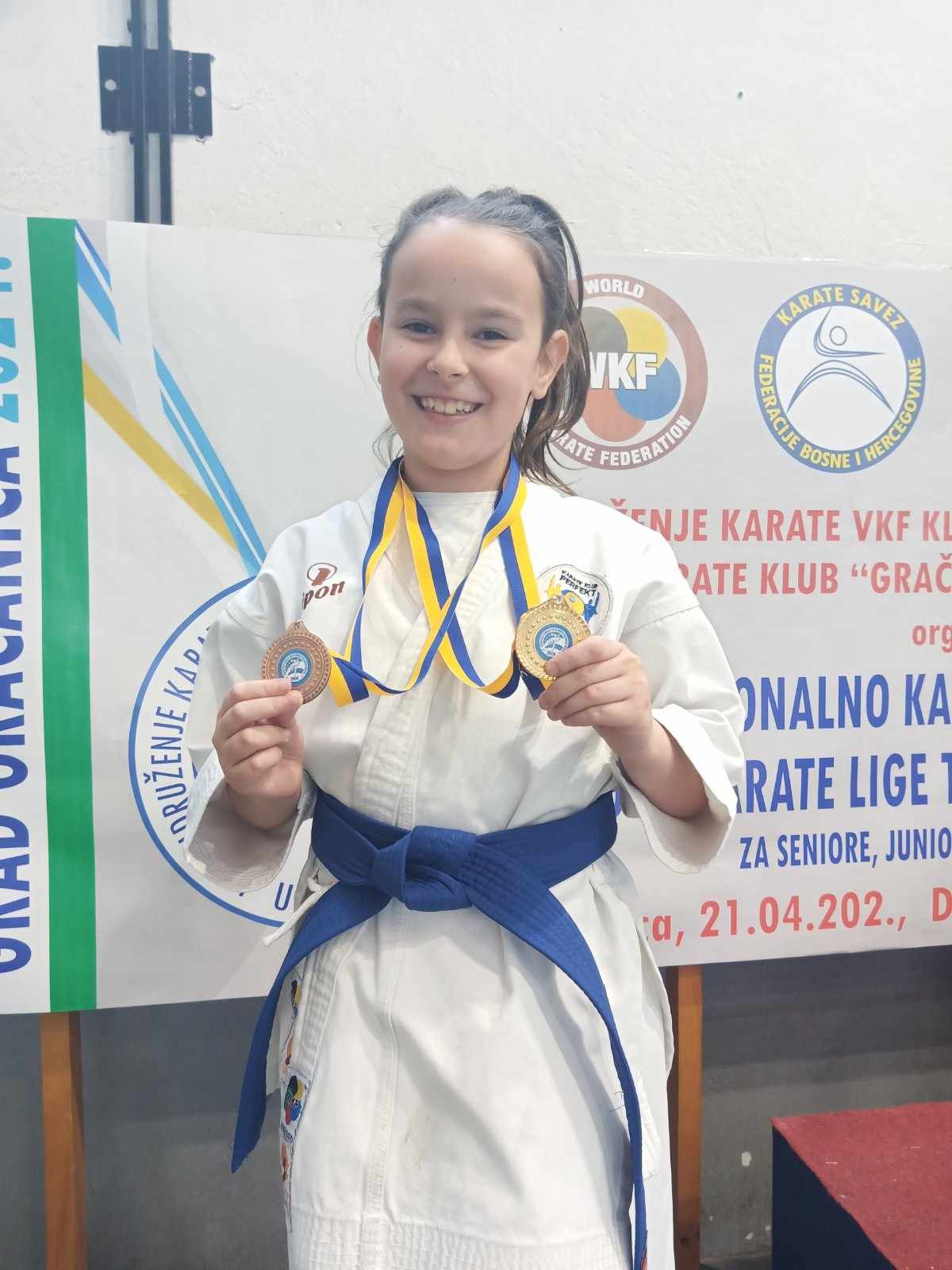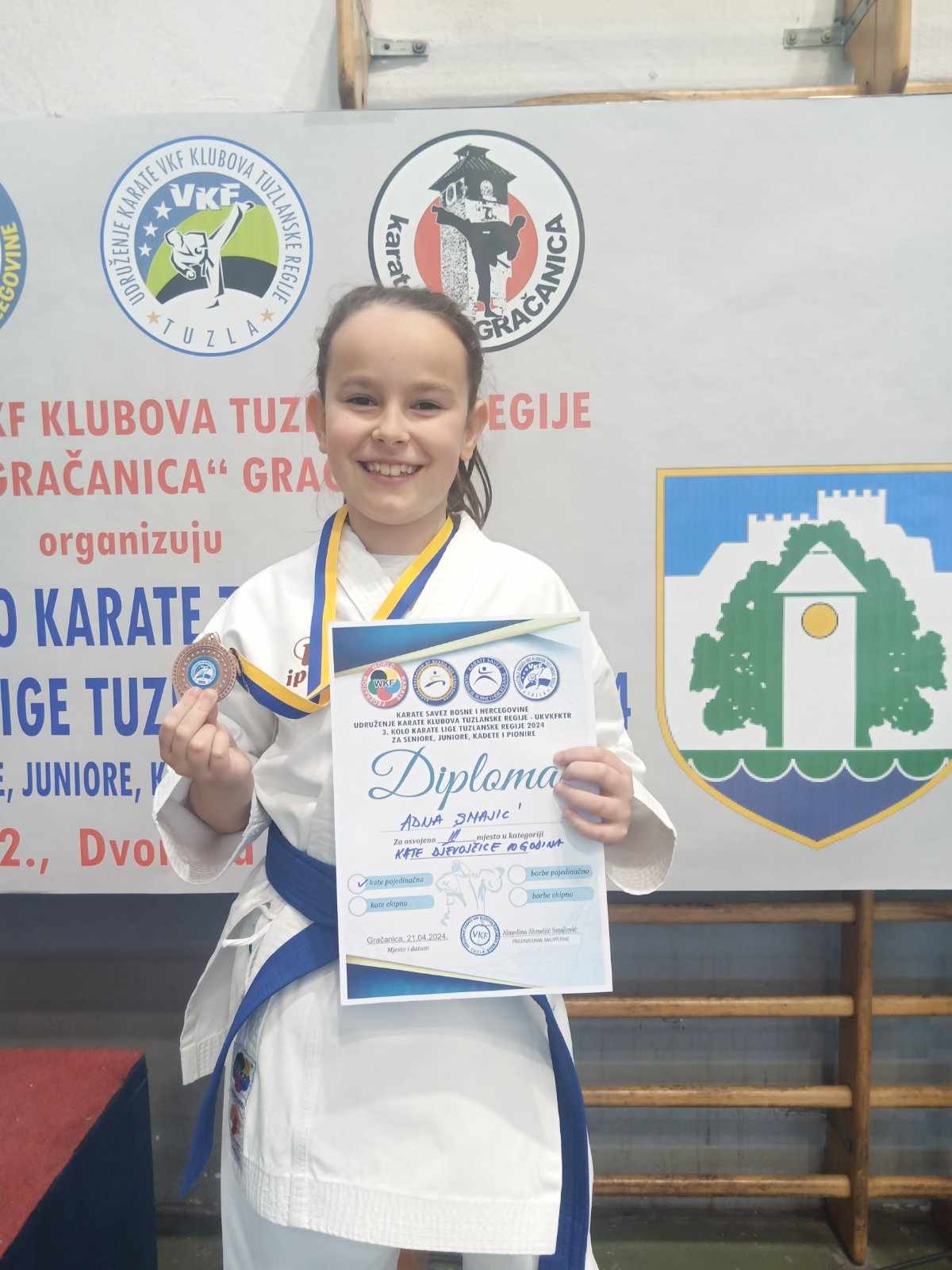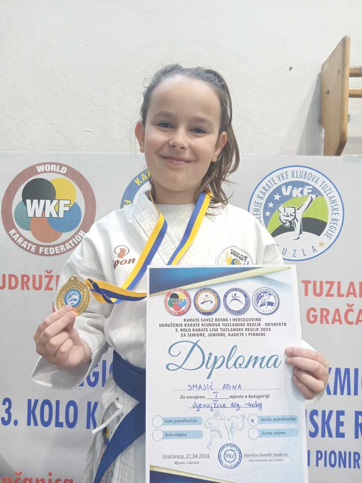 Najbolji uspjeh na turniru iz našeg kluba je ostvarila Smajić Adna, tako što je osvojila dvije medalje u katama i u borbama. Adna je jedna od najredovnijih članica u klubu, te je izuzetno vrijedna i uporna u vježbanju, što dokazuju njeni rezultati. Hvala ponosnim roditeljima na punoj podršci.